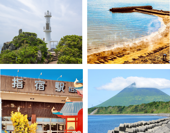 ”指宿(いぶすき)”は、鹿児島県の薩摩半島の最南端に位置する人口約4万人・面積148.80平方キロメートルのまちです。