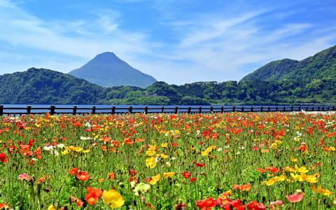 湖水は藍色に澄み、12月下旬からは菜の花、4月中旬からはポピーやパンジーが湖畔を彩る美しい景色を堪能することができます。